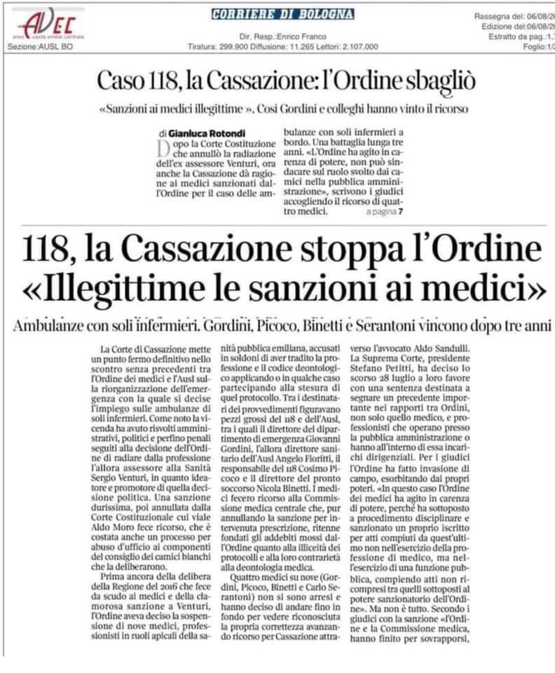118, la Cassazione stoppa l'Ordine "Illegittime le sanzioni ai medici"