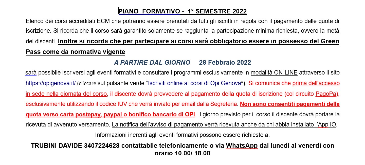Al via i corsi del I semestre 2022, piano formativo completo
