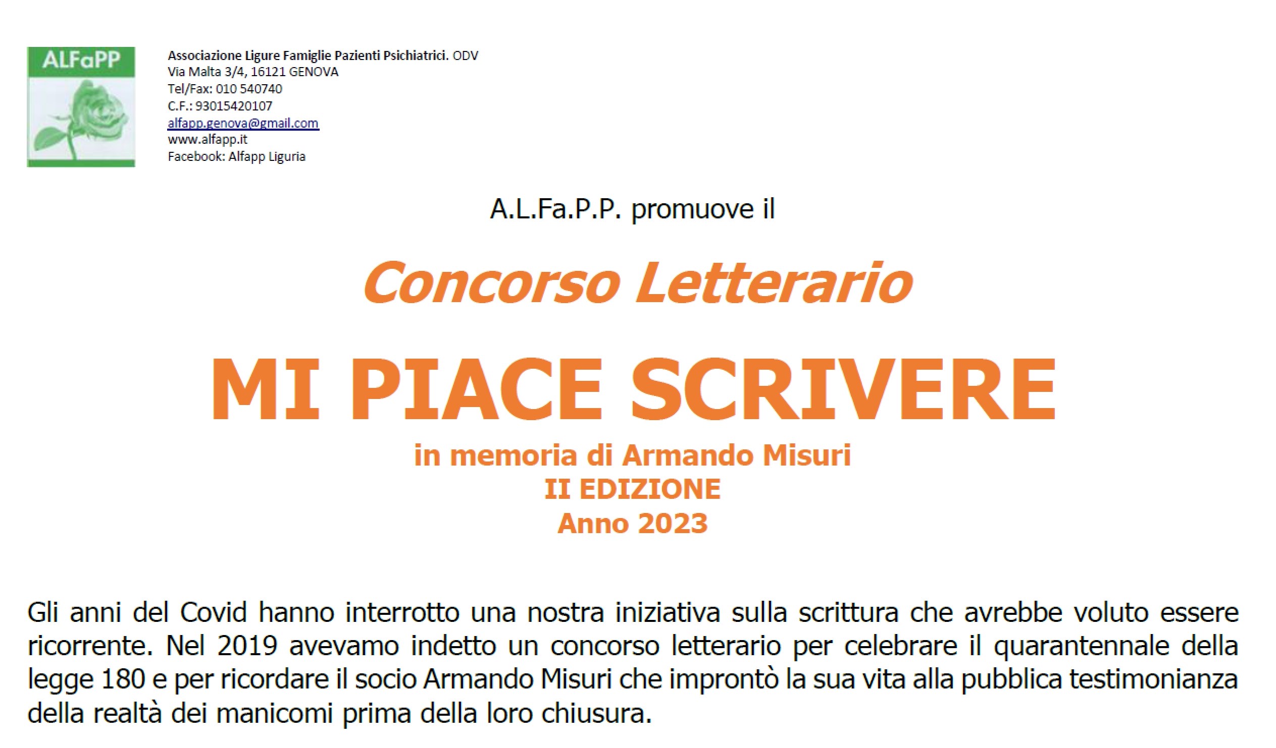 A.L.Fa.P.P. promuove il Concorso Letterario MI PIACE SCRIVERE