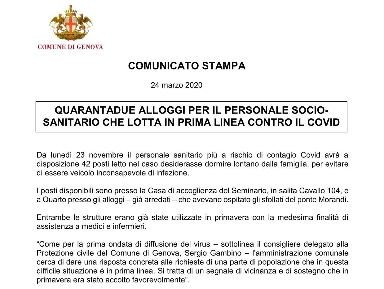 Alloggi per il personale sanitario in prima linea per il Covid