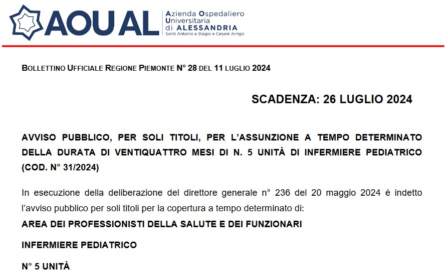 Avviso pubblico Infermiere Pediatrico, Biagio Arrigo Alessandria