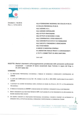 Circolare ENPAPI, Ente Previdenza Infermieri