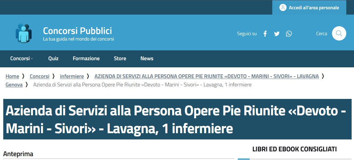 Concorso pubblico, per esami, per la copertura di un posto di Infermiere