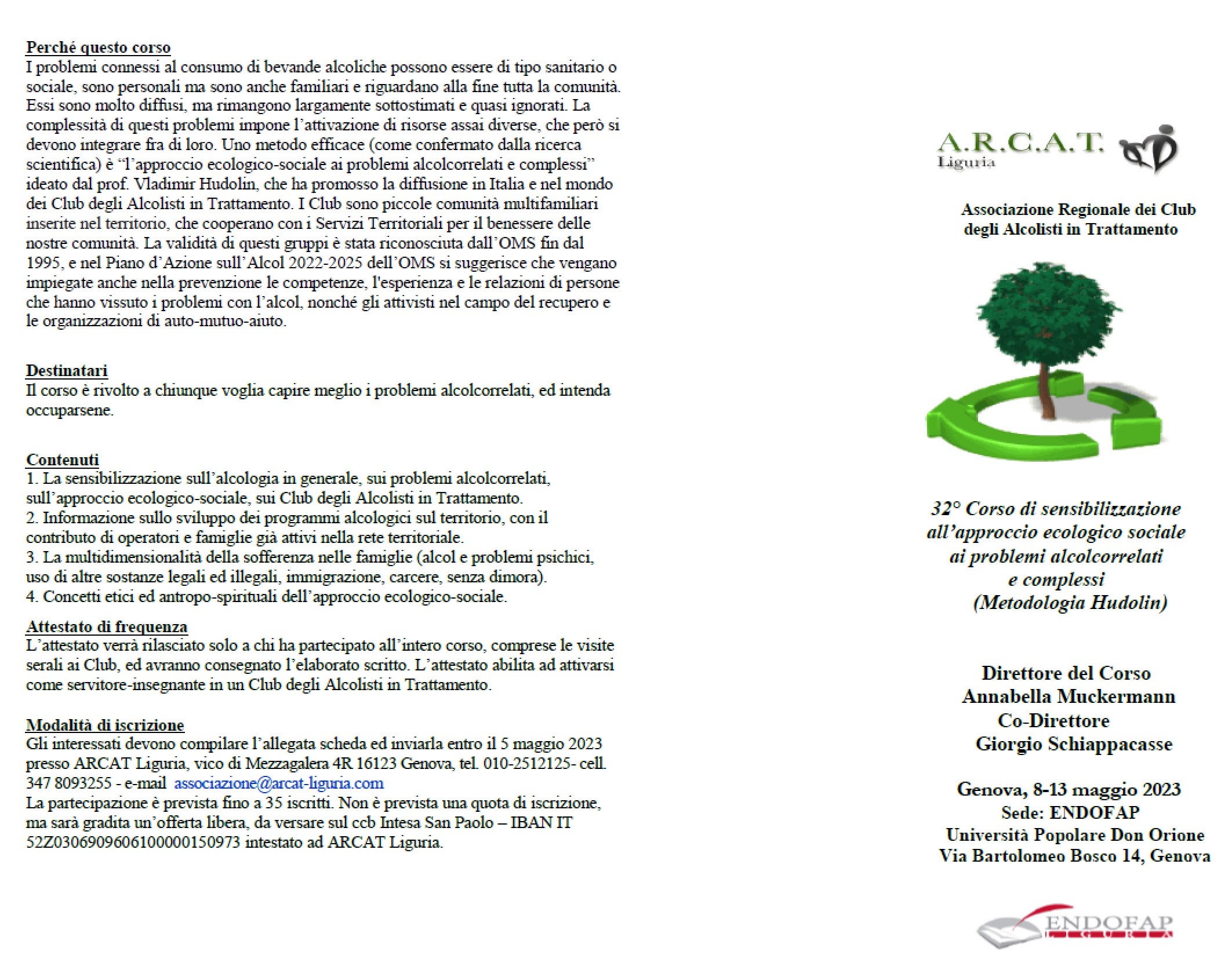 Corso di Sensibilizzazione all'approccio Ecologico sociale ai problemi alcol correlati complessi