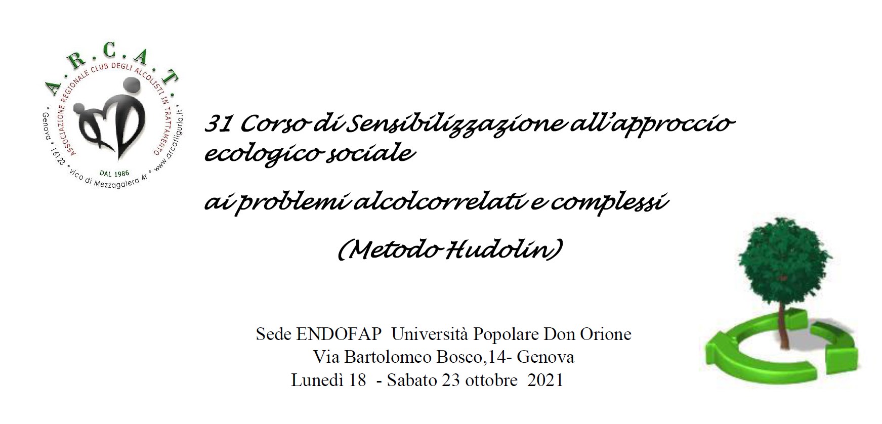 Corso di Sensibilizzazione all'approccio ecologico-sociale ai problemi alcolcorrelati e complessi