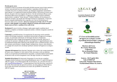 Corso di Sensibilizzazione all'approccio ecologico sociale ai problemi alcool correlati e complessi