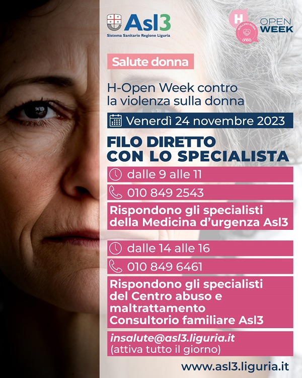 Giornata internazionale contro la violenza sulle donne: venerdì 24 novembre in Asl3 filo diretto