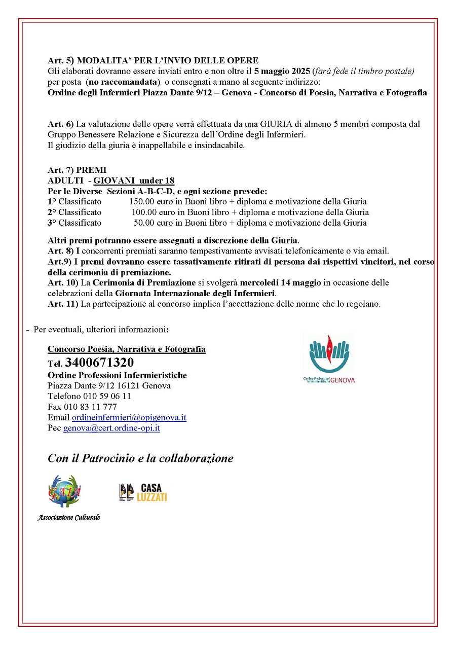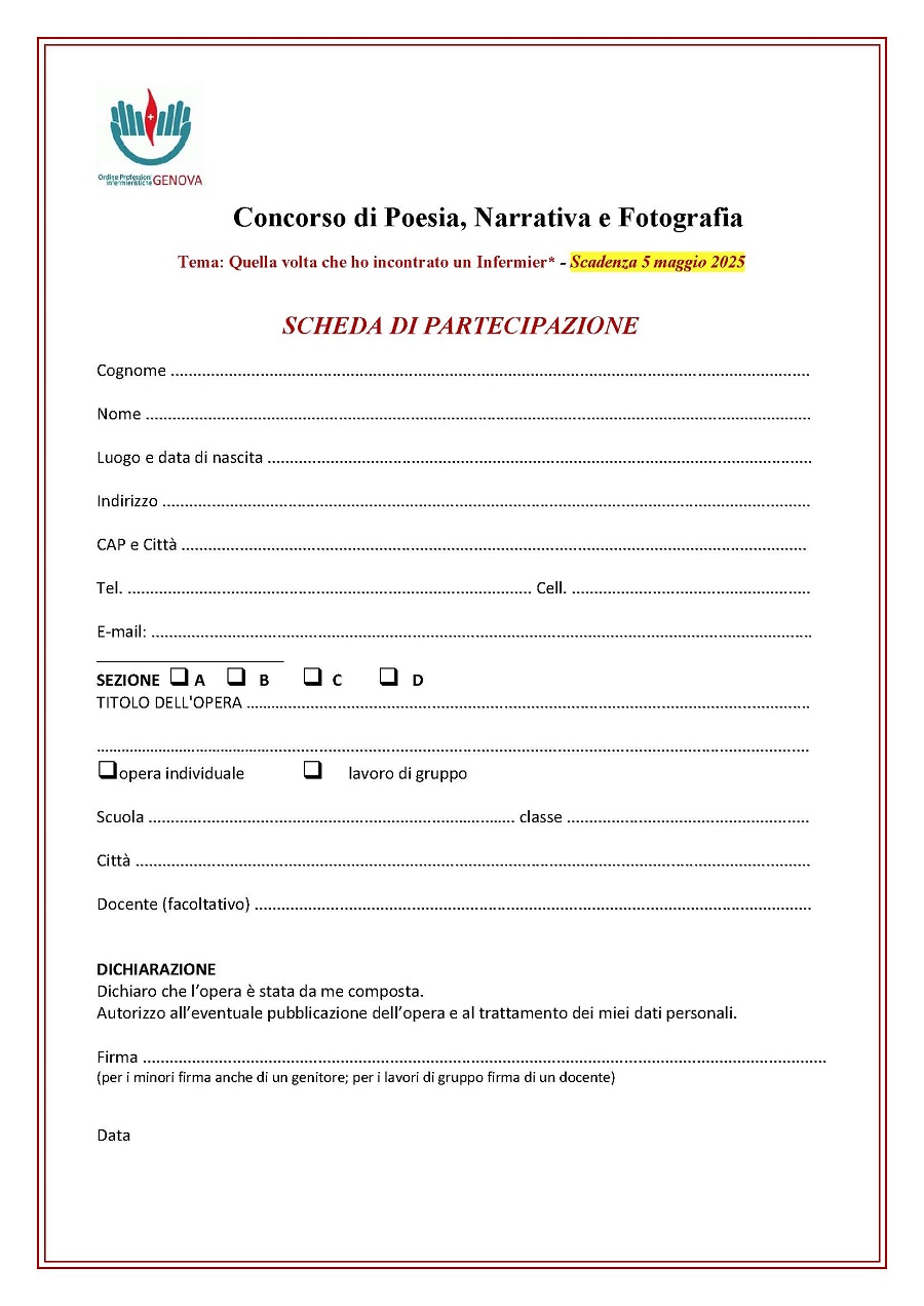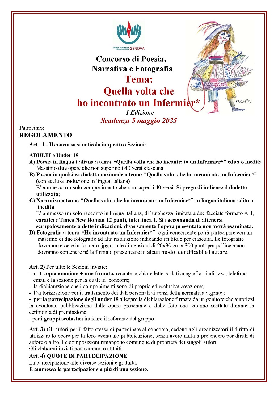 L'Ordine delle Professioni Infermieristiche bandisce un concorso di Poesia, Narrativa e Fotografia