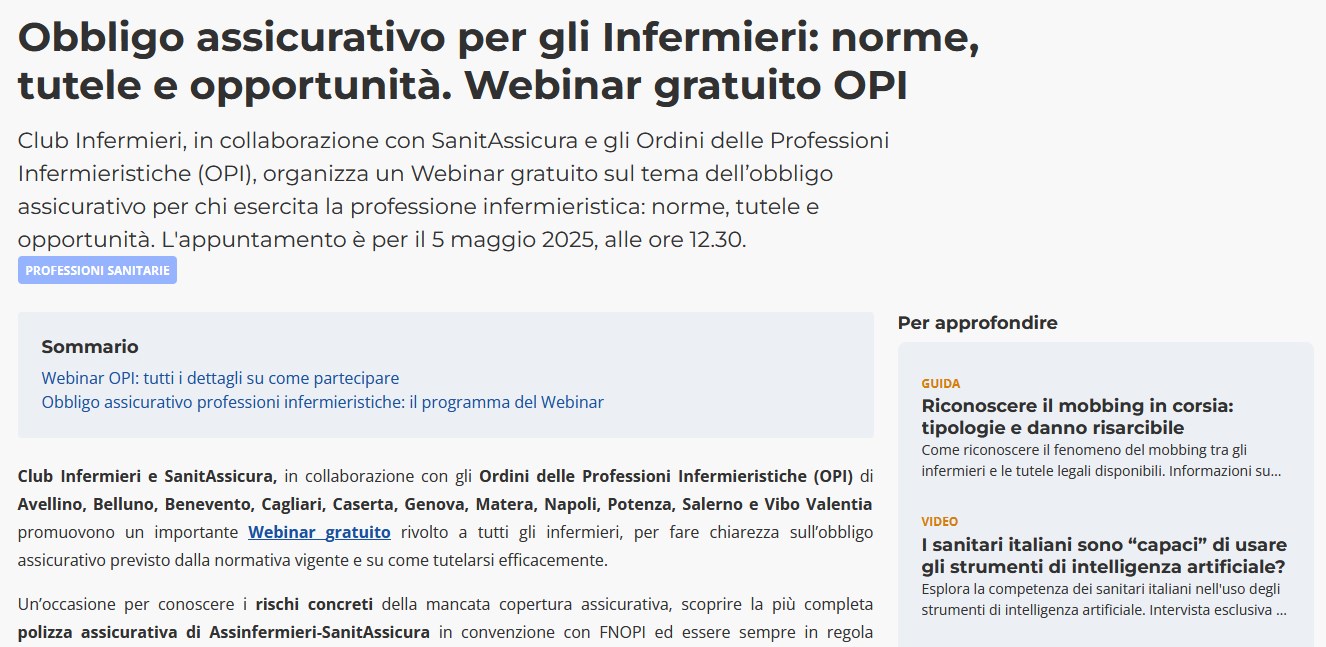OBBLIGO ASSICURATIVO PROFESSIONI INFERMIERISTICHE: NORME, TUTELE ED OPPORTUNITA’