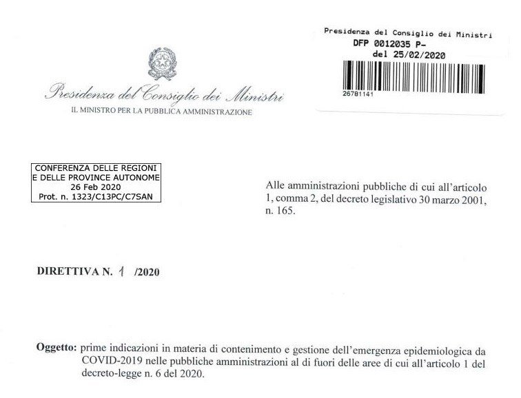 Prime indicazioni in materia di contenimento e gestione dell'emergenza epidemiologica da COVID -2019
