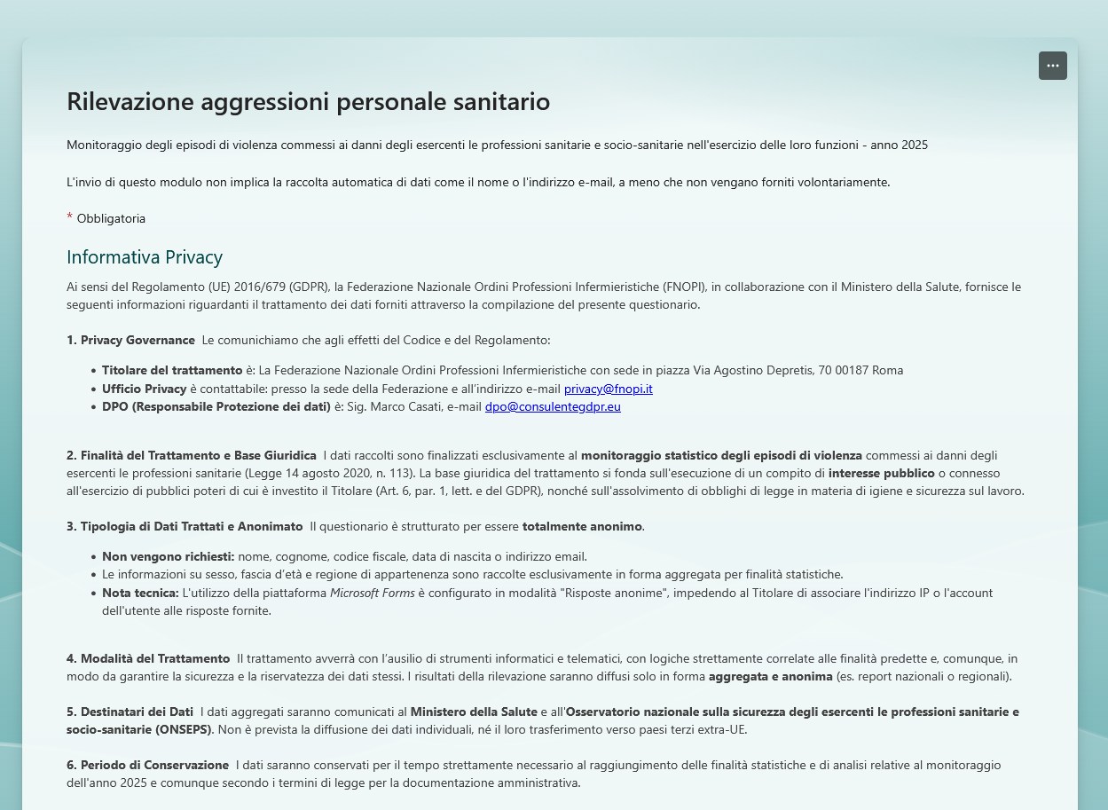 Rilevazione aggressioni personale sanitario, survey